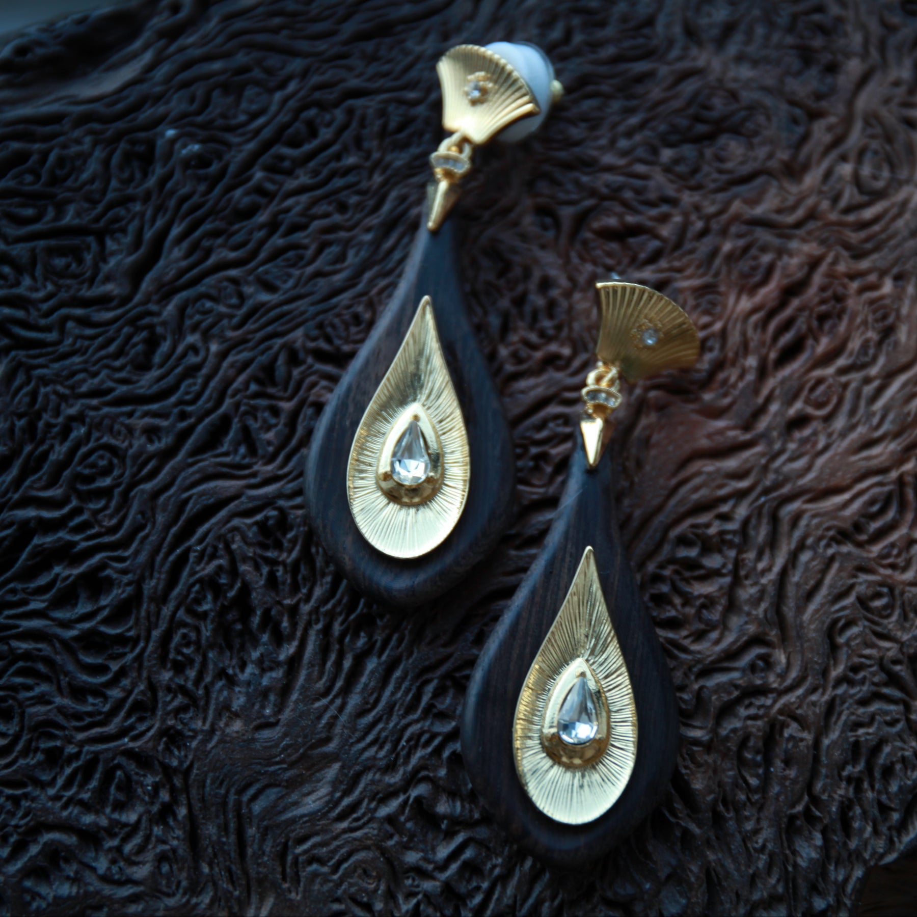 Discover the perfect fusion of natural beauty and artistic design with our Walnut Wood Teardrop Earrings. Handcrafted from genuine walnut wood, these lightweight earrings feature a stunning inlay of copper and a brilliant teardrop-shaped crystal, creating a unique accessory that transitions seamlessly from day to night.